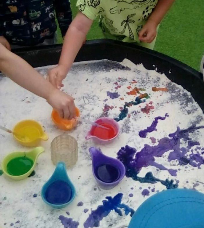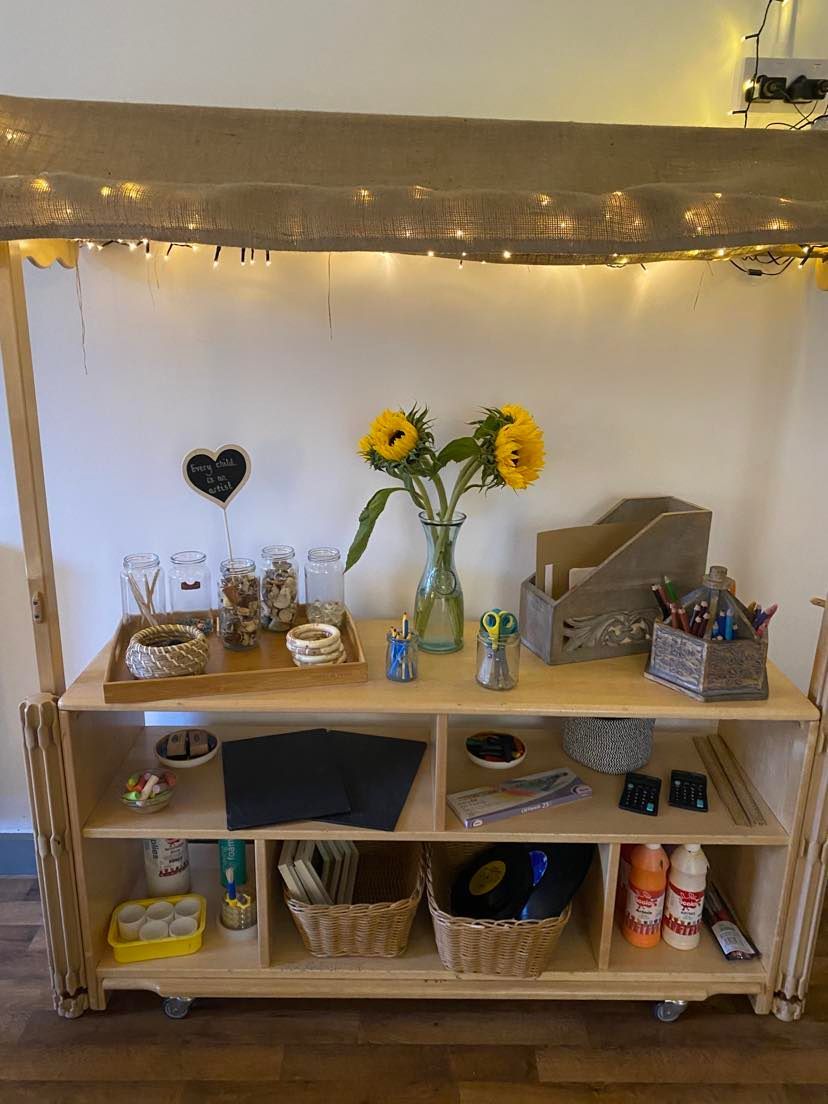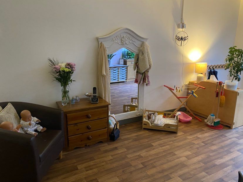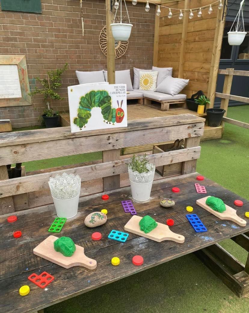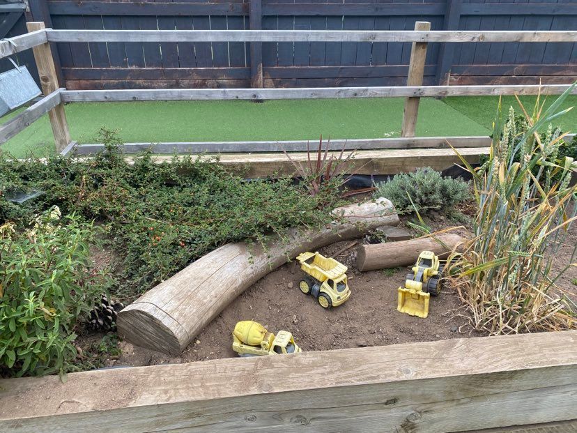 The Dragonflies room as an outdoor learning environment directly accessed from the indoor learning environment providing free-flow between the two areas. The outdoor area includes a seating area, sandpit and play dough station. They also have use of the large climbing frame and large loose parts construction.
